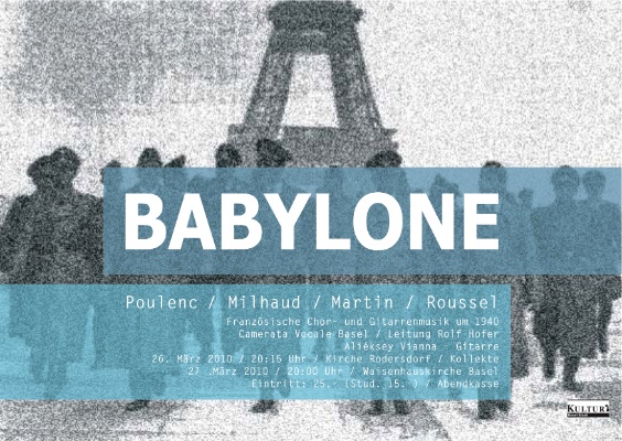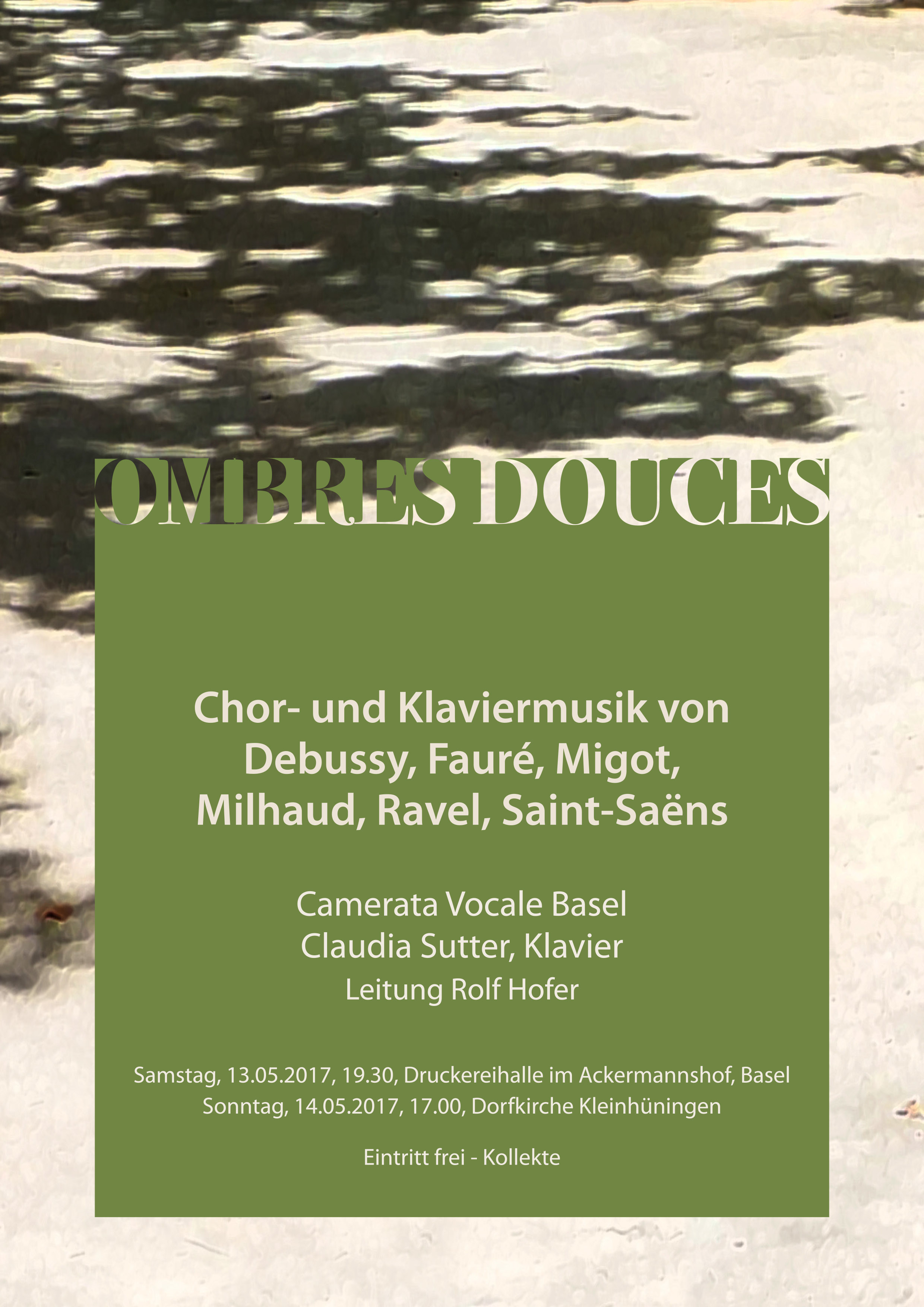 Bereits zum vierten Mal widmet sich die Camerata Vocale Basel der französichen Chormusik: Nach „Un soir de neige“ mit Werken von Fauré, Ravel und Poulenc zusammen mit Claudia Sutter (2000); den Psaumes de David von Sweelinck (2008) und „Babylone“ mit Werken von Milhaud und Poulenc (2010) werden im Mai 2017 geheimnisvolle, duftende und schillernde Gesänge für Chor a capella einerseits sowie für Chor und Klavier von Debussy, Fauré, Migot, Milhaud, Ravel und Saint-Saëns erklingen.