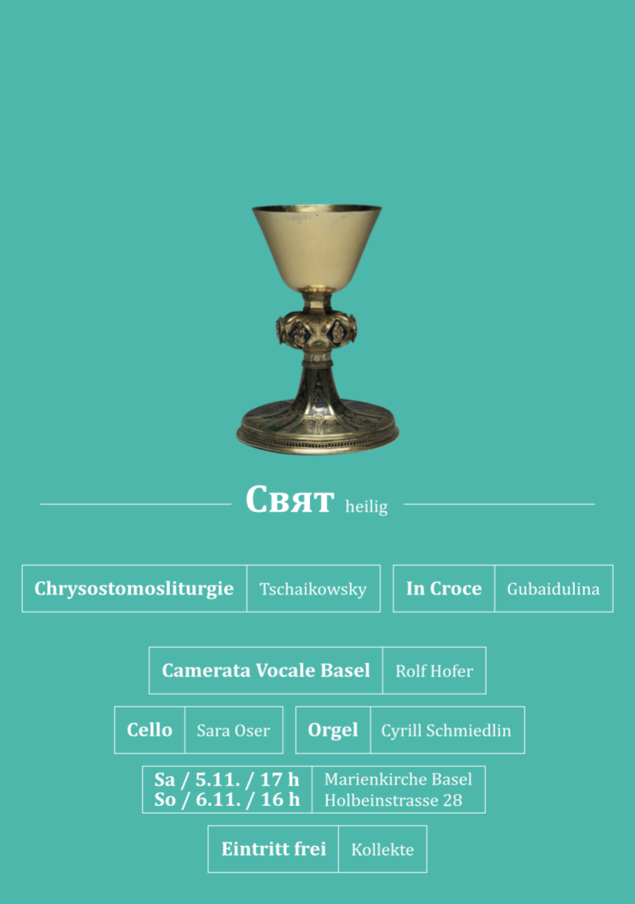 Zum zweiten Mal in ihrem zwanzigjährigen Bestehen setzt sich die CVB mit russischer Musik auseinander: nachdem sie im Jahre 2012 Werke des russischen Komponisten E.Gunst quasi zur schweizerischen Erstaufführung gebracht hat, wird sie sich jetzt Tschaikowskys Chrisostomosliturgie op 41 in C-dur von 1878 widmen, einem ganz dem russisch-orthodoxen Gottesdienst verpflichtetem Werk. Den erhabenen, festlichen und tief religiösen Klängen Tschaikowskys werden die 100 Jahre später entstandenen Werke der ebenfalls russischen Komponistin Sofia Gubaidulina gegenübergestellt: 10 kurzen Präludien für Cello Solo (1974) und das tief religiöse Werk „In Croce“ für Cello und Orgel (1979) dialogisieren in einer moderneren Klangsprache mit der Liturgie.