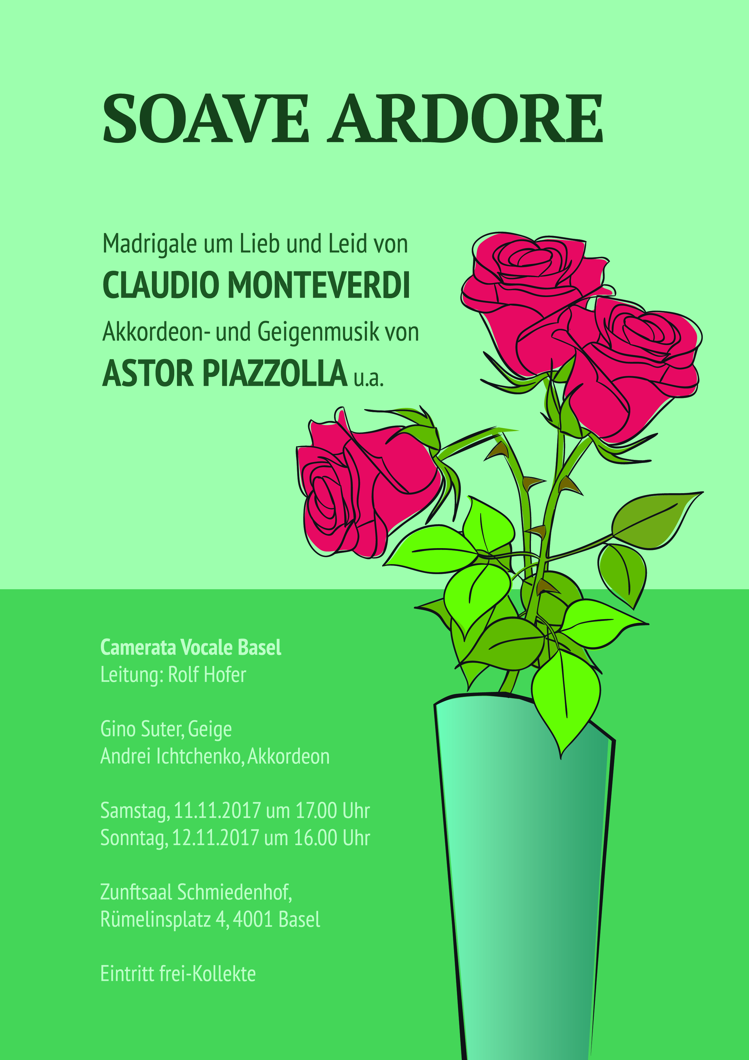 2017, also rechtzeitig zum 450. Geburtstag, ehrt sie nun den Komponisten mit einer Auswahl von Madrigalen aus dem ersten bis fünften Madrigalbuch unter dem Titel „Soave Ardore“ (süsse Glut). Als Komponist für grosse Gefühle hat er Operngeschichte geschrieben. Monteverdi war aber auch ein Meister der Madrigale, die man durchaus als „Minidramen“ bezeichnen kann. Der Text und die Gefühle dessen, der den Text spricht, leiten seine musikalische Erfindung.
