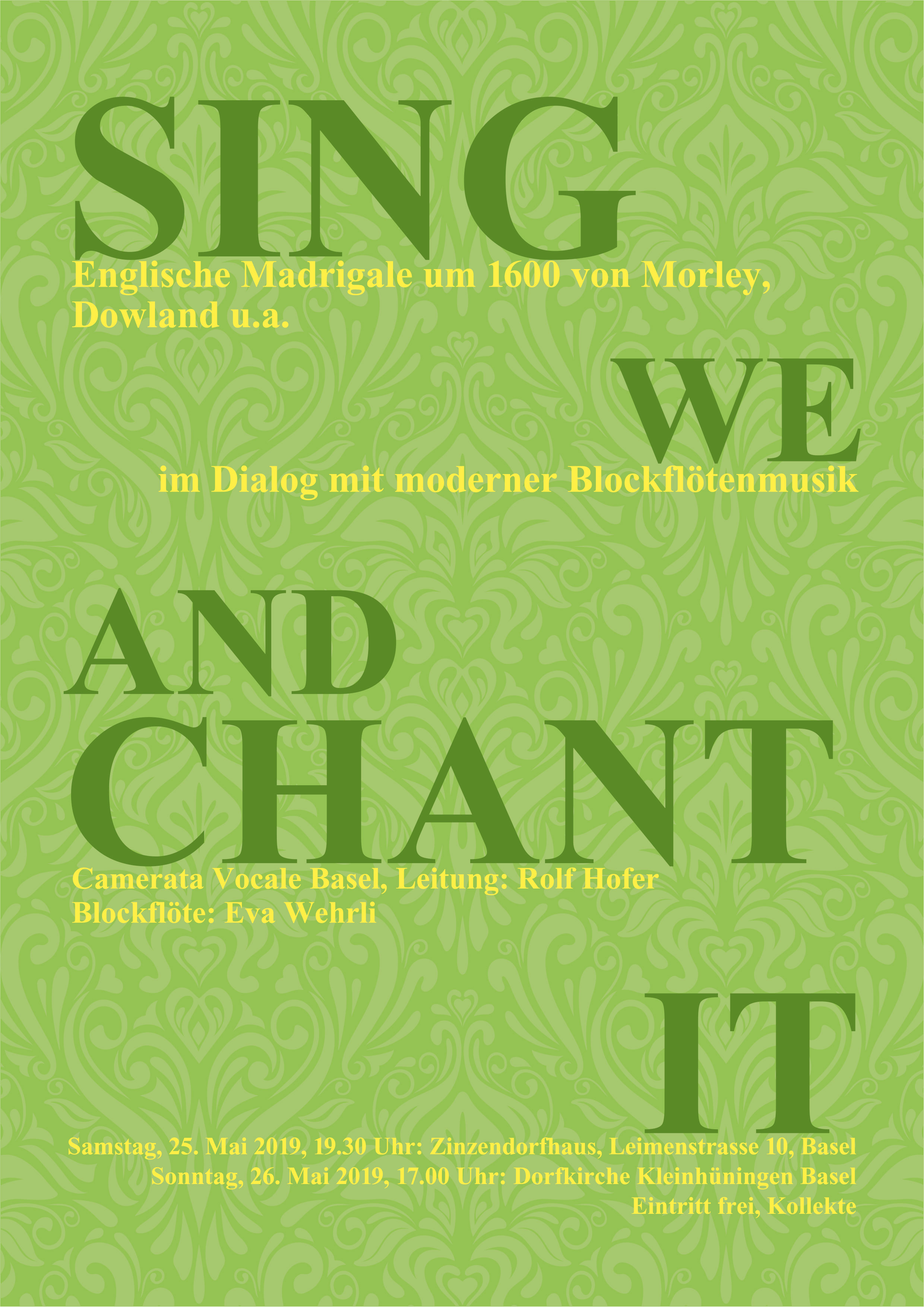 Das Frühlingskonzert der Camerata Vocale Basel 2019 widmet sich der Hochblüte des Englischen Madrigals zwischen 1580 und 1620 mit Werken von Morley, Byrd, Weelkes, Downland, Bennet und Farnaby